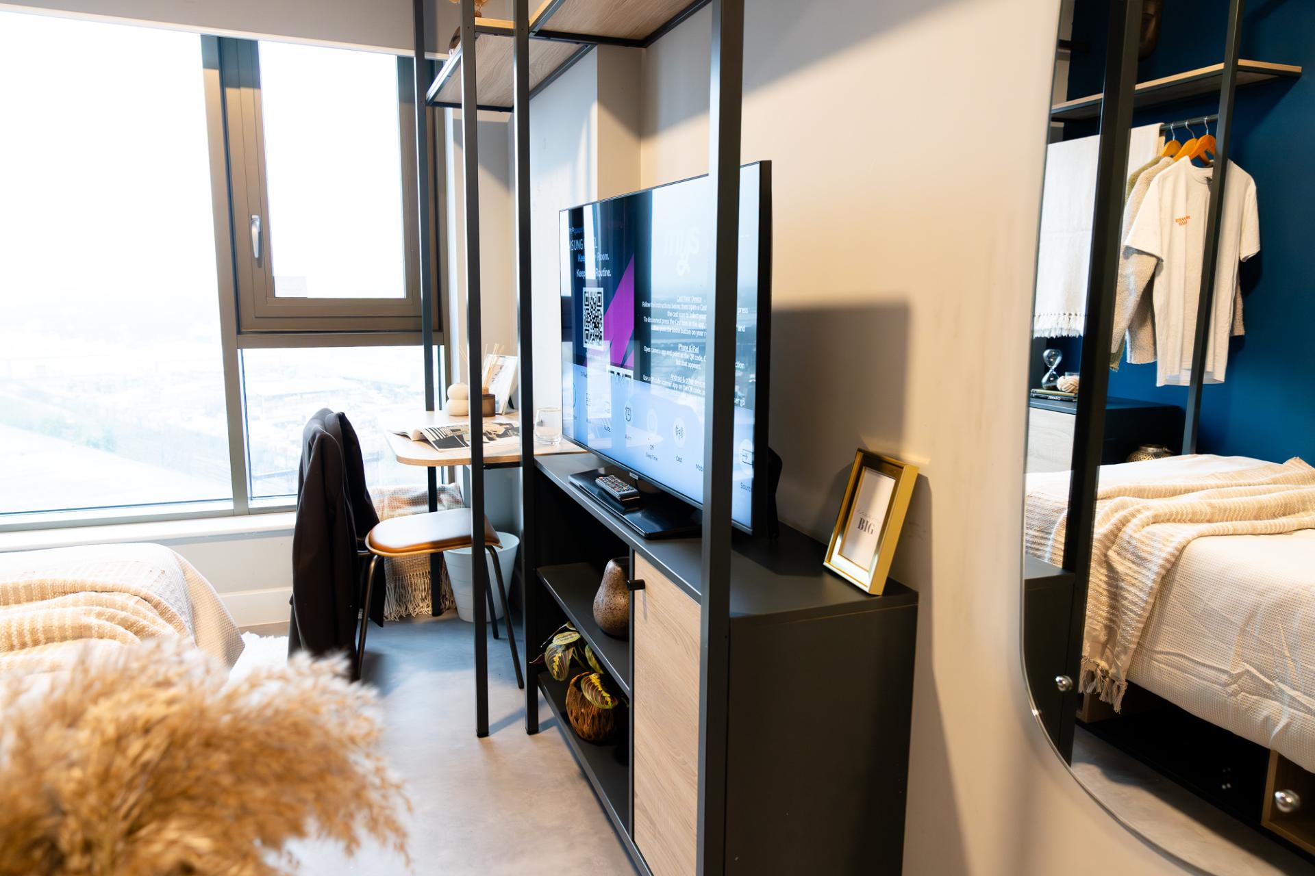 Whether you choose a studio or a shared apartment, each space includes air conditioning, a Smart TV, and superfast Wi-Fi—ideal for studying, relaxing, or both. There’s plenty of room to make it your own.