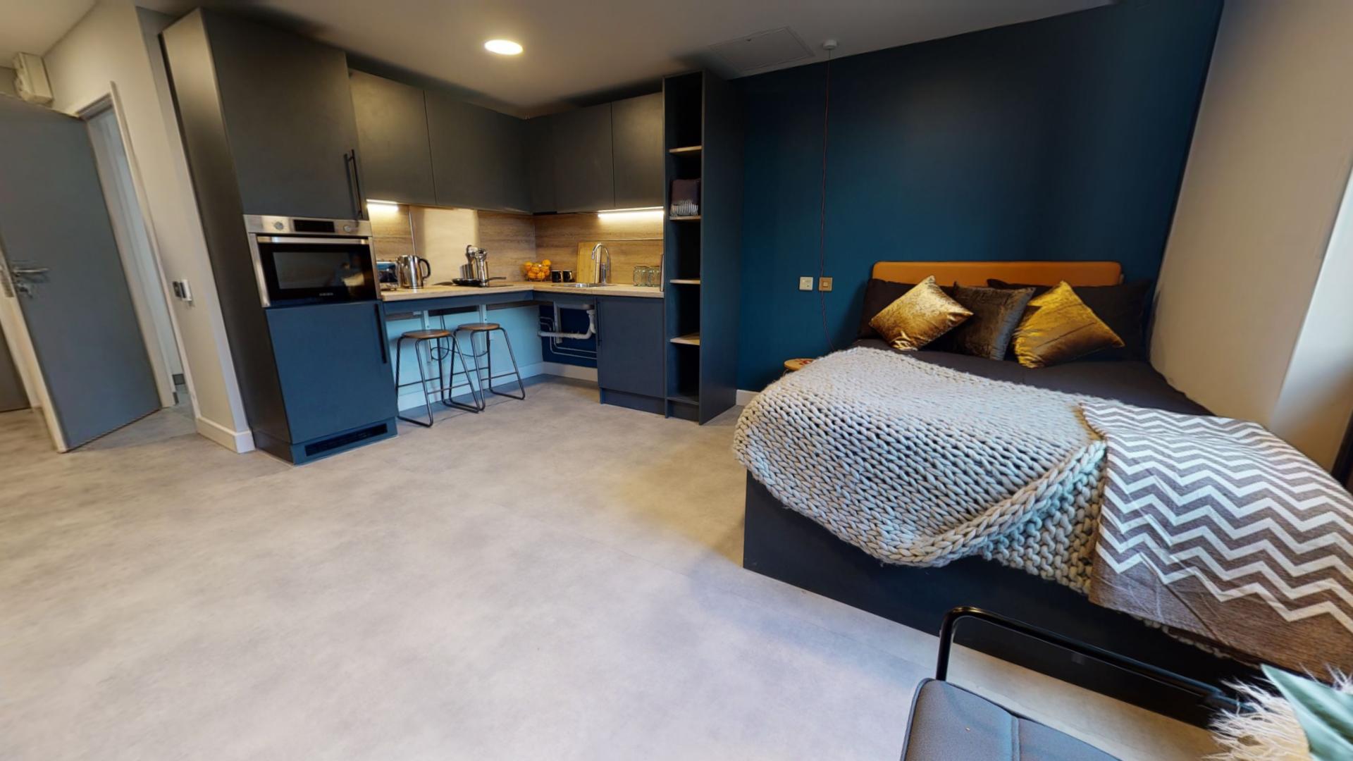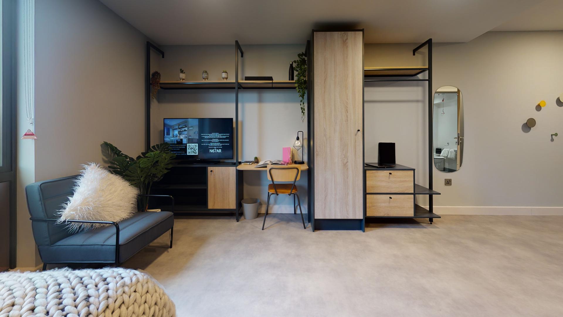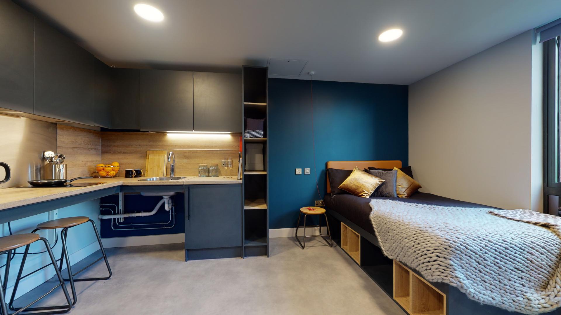 This 27.8m² Accessible Studio offers plenty of space, including a large bed, study area, private kitchen, and lounge area. The accessible wet room with shower provides extra convenience and complete privacy. Large windows provide excellent views of Stoke Park to the south-east, and air conditioning keeps you comfortable all year. You can also watch a Samsung TV for entertainment. Beyond your room, Guilden Village provides a variety of amazing amenities such as a cinema room, games room, rooftop terrace, and more to keep you active and entertained.