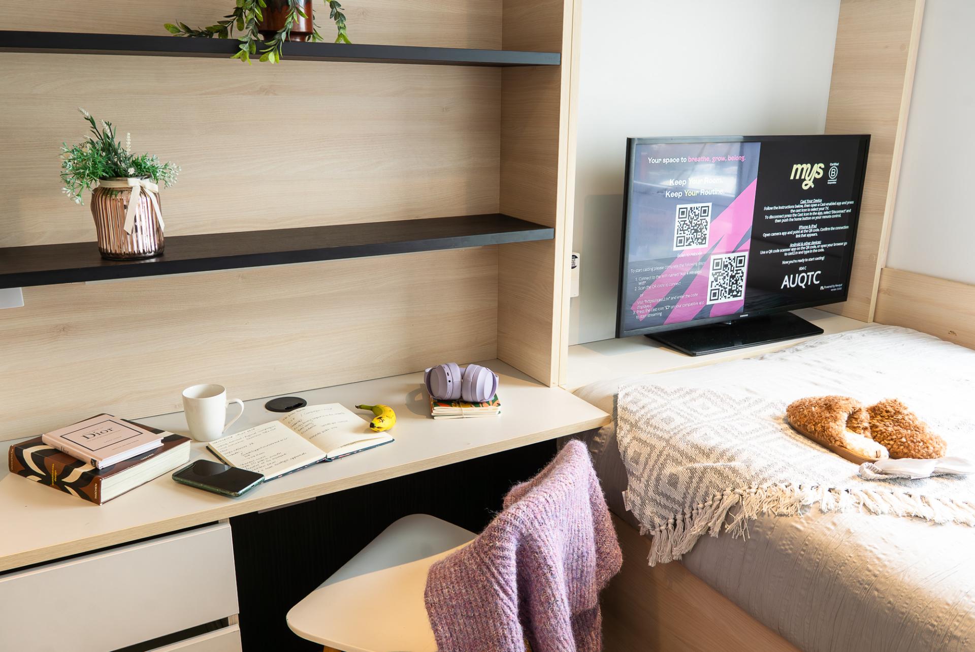 Choose from fully furnished en-suite rooms or private studios, each designed for comfort and practicality. You’ll have air conditioning, a Samsung Smart TV, and high-speed Wi-Fi, making it easy to study, relax, or keep in touch.