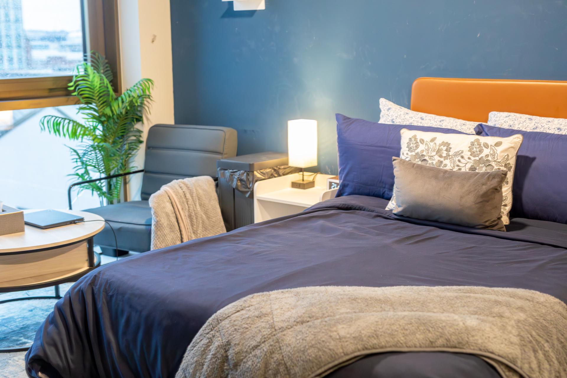 Inside the building, you’ll find everything you need to balance work and downtime. There are two gyms, a sky lounge, private dining space, and a cinema room—as well as quiet study areas when you need to concentrate.