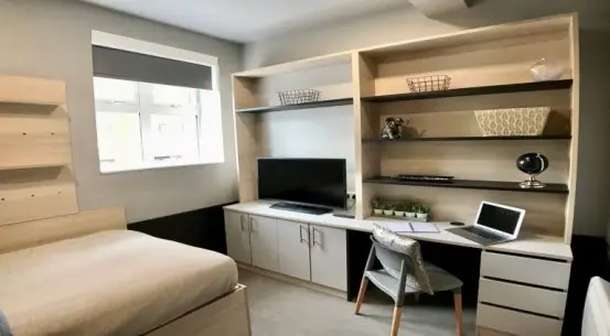 Whether you opt for a studio apartment or a shared flat-style unit, each living space is fully fitted with air-conditioning, a Smart TV, and ultra-fast Wi-Fi — everything you need to study, relax or do both.